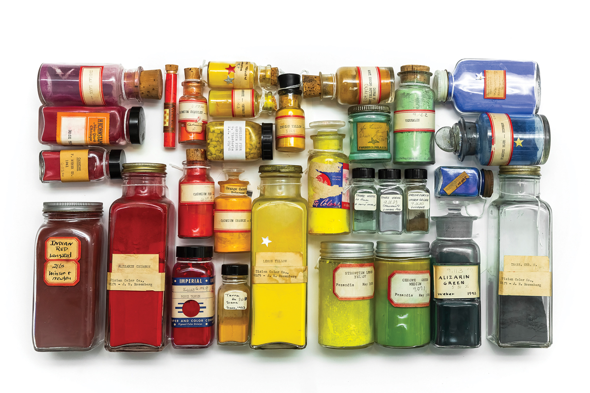 Georgia O’Keeffe đã bảo quản các lọ bột màu của mình trong một chiếc thùng gỗ. Trong hình là một số lọ bột màu đã được Bảo tàng Nghệ thuật Harvard chọn lọc trong bộ sưu tập. Ảnh: Caitlin Cunningham/ President and fellows of Havard College.