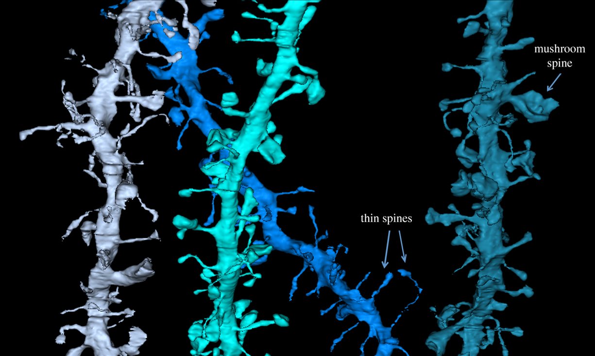 Hình 3D cho thấy cấu trúc của phần đuôi gai trong phần vỏ não trước của chuột. Nguồn ảnh: The Guardian