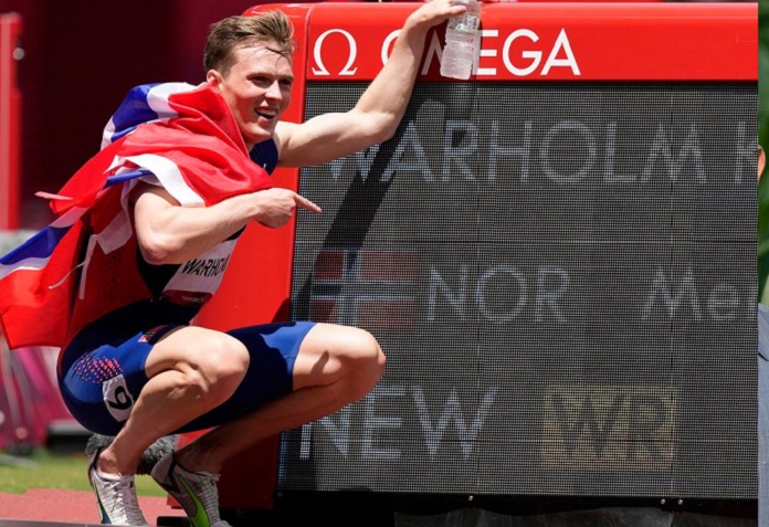 Trong màn lên ngôi của các kỷ lục trong môn điền kinh có vai trò đáng kể của cuộc chiến vật chất trong ngành sản xuất đồ thể thao. Đối với cú chạy tuyệt vời, đôi giầy của Warholm tỏ ra cực kỳ hữu ích. Hãng trang bị đồ thể thao Puma đã kết hợp với các kỹ sư của cuộc đua công thức 1 của Mercedes để phát triển một loại đinh-công nghệ cao. Phần nguyên liệu bên cho phần trên được làm bằng sợi carbon, phần đế cũng là một miếng carbon có thể uốn cong và ngay lập tức trở về hình dáng. “Loại giày này giúp tôi giữ được sức bền lâu hơn để dồn vào cú bung sức ở 100 mét cuối cùng”, Warholm đã nói về hiệu ứng này của đôi giầy. Bên cạnh Warholm còn có Andre De Grasse, vận động viên cự ly tốc độ người Canada, sử dụng loại giầy này.
