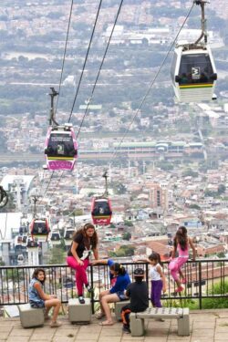 Ở Colombia, việc chuyển đổi giao thông toàn diện ở Medellín là một ví dụ tham khảo để các thành phố đang phát triển có thể đạt được những thành tựu đáng kể về môi trường và xã hội thông qua các chính sách di chuyển tích hợp. Hệ thống đa phương thức của thành phố – kết hợp giữa tàu điện, cáp treo điện kết nối các cộng đồng thiểu số trên sườn đồi, xe buýt nhanh và hạn chế xe máy trong những giai đoạn ô nhiễm – đã giảm những ngày ô nhiễm ở cấp độ nguy cấp từ 30 ngày vào năm 2016 xuống chỉ còn một ngày vào năm 2018. Những thành công khác bao gồm hiện đại hóa hệ thống xe buýt với 506 xe dùng công nghệ xanh hơn (giảm 4.066 tấn CO2 và 5.4 tấn PM2.5), trong khi riêng hệ thống tàu điện đã giảm 200.000 tấn CO2 mỗi năm với việc phục vụ hơn 800.000 hành khách mỗi ngày. Bằng cách tập trung vào các nguồn đi lại chiếm 80% ô nhiễm không khí của thành phố đồng thời vẫn duy trì quyền đi lại một cách công bằng thông qua hệ thống cáp treo phục vụ những khu phố tạm, Medellín phổ biến rộng rãi trong việc điện hóa giao thông để có thể đạt được cả mục tiêu cải thiện môi trường lẫn tính bao trùm xã hội.