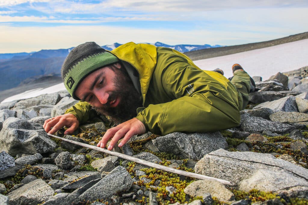 Một chuyên gia thuộc Chương trình Khảo cổ học về Sông băng đang tiến hành khảo sát. Ảnh: nytimes