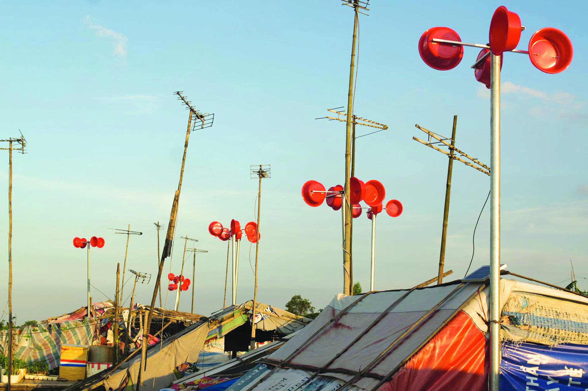 Các turbin gió được lắp đặt tại các hộ gia đình ở Sông Hồng, có thể giúp việc thắp sáng. Ảnh: FB của 1516-Green Design.