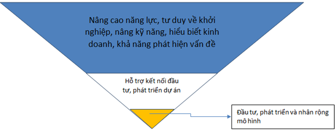 Phễu này giúp cho các cuộc thi và các trường – nơi tổ chức cuộc thi, lựa chọn phân khúc để hỗ trợ. Chẳng hạn, nếu nhắm đến phân khúc đại trà, để các em học sinh nâng cao trải nghiệm, gia tăng kỹ năng… thì cần có triết lý và format tương ứng với phân khúc mục tiêu đó. Bên cạnh đó, một ích lợi khác của phễu cuộc thi này còn là để các trường xác định rõ trách nhiệm của mình trong việc phục vụ từng giai đoạn khác nhau của các dự án khởi nghiệp trong sinh viên. Nhà trường chỉ tham gia kết nối đầu tư hoặc đầu tư, phát triển và nhân rộng mô hình khi các em đã có những dự án khả thi và được thử nghiệm bởi thị trường.