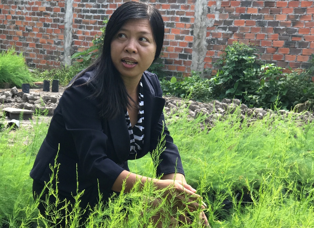 Bà Trương Thị Hồng Giang, giảng viên khoa Kinh tế – luật, ĐH Trà Vinh, muốn trải nghiệm độ “gập ghềnh” của hành trình khởi nghiệp, với mô hình trồng măng tây trên đất giồng cát bằng chính nguồn tiền riêng.