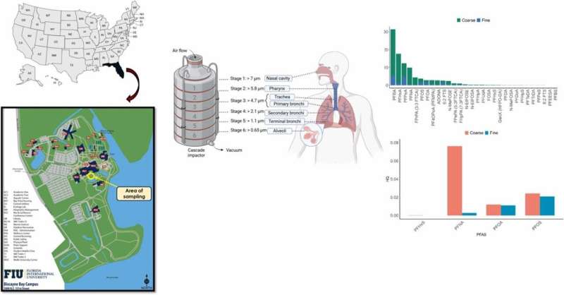Trong một nghiên cứu mới được công bố trên Journal of Hazardous Material, phó giáo sư hóa học và hóa sinh Natalia Soares Quinete và nghiên cứu sinh Maria Guerra de Navarro ở Viện Môi trường thuộc Đại học Quốc tế Florida phát hiện một số PFAS trong không khí ở Nam Florida bám vào các hạt mịn đến mức có thể đi sâu vào phổi và xâm nhập vào máu. Hiện nay người ta cũng đã tìm thấy PFAS trong nước, đất, thực phẩm và nhiều loại sản phẩm tiêu dùng khác.