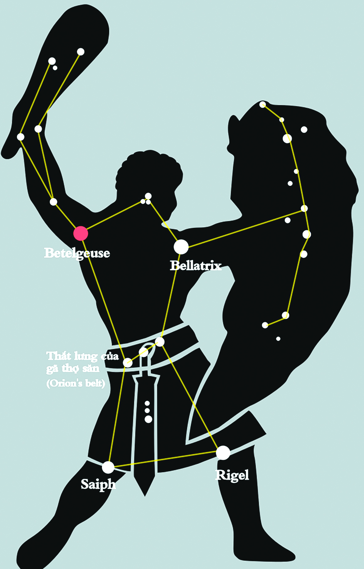 Vào những ngày này, nếu bạn nhìn về phía Tây ngay sau khi Mặt trời lặn, có thể bạn sẽ kịp thấy một ngôi sao rực rỡ màu đỏ cam từ từ lặn xuống dưới đường chân trời. Trong dân gian Việt Nam, ngôi sao này chỉ là một trong bốn góc của thửa ruộng bao quanh sao Cày, nhưng trong thiên văn học hiện đại, đây là sao Betelgeuse, đánh dấu bờ vai của chòm sao mang hình ảnh gã thợ săn Orion từ thần thoại Hy Lạp. Hằng năm ở bán cầu Bắc, Betelgeuse thường bắt đầu xuất hiện trên bầu trời tối vào cuối tháng 12, rồi ngự trị ở khoảng trời phía Nam và Tây Nam trước khi lặn xuống chân trời phía Tây vào đầu tháng 5. Khác với những vì sao ở cùng khoảng trời với nó, Betelgeuse đầy rẫy những ẩn số và đã khơi dậy trí tò mò của những người quan sát bầu trời đêm từ trước đến nay. Tia Sáng xin giới thiệu với bạn đọc ba kì về lịch sử và những hiện tượng kì lạ xung quanh ngôi sao bất thường này.