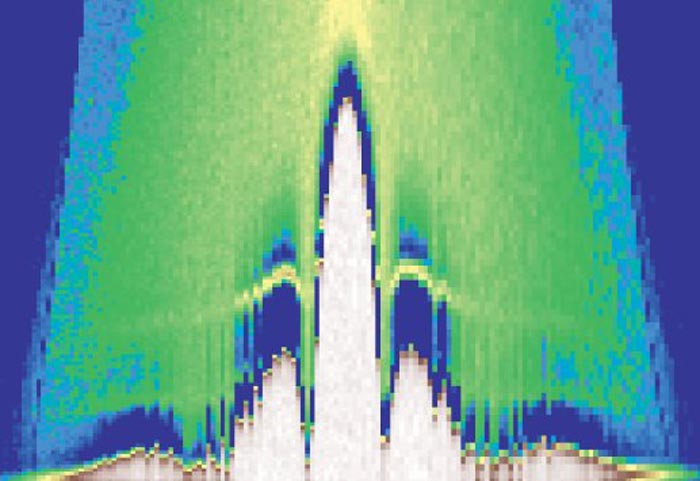 Nhóm nghiên cứu sau đó đã áp một điện áp cực nhỏ vào và dùng kính hiển vì quét truyền qua, một kỹ thuật đặc biệt cho phép họ quét phổ năng lượng quanh từng hòn đảo trên bề mặt vàng.