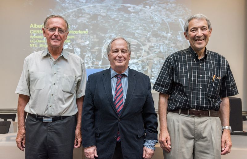 Peter van Nieuwenhuizen, Sergio Ferrara và Dan Freedman (từ trái qua phải, năm 2016) nhận giải Breakthrough cho những sáng tạo về Thuyết Siêu hấp dẫn. NguồnCERN