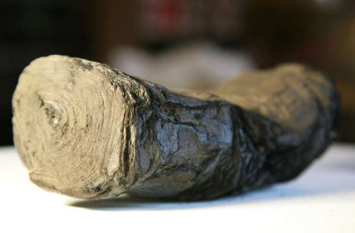 Một đầu của một trong hai cuộn giấy Herculaneum do Viện nghiên cứu Pháp cung cấp, đang được quét tại từ L’Institut de France đang được quét bởi Diamond Light Source (Máy gia tốc synchrotron thế hệ thứ 3 đặt gần Oxford mang tên Nguồn sáng kim cương), tại Đại học Kentucky, nhóm Sáng kiến Phục hồi Kỹ thuật số. Nguồn: Diamond Light Source.