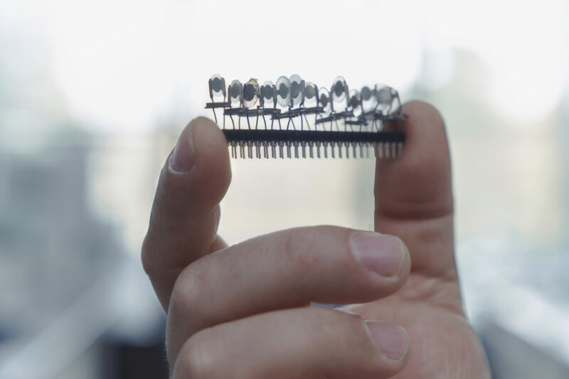 “Các mùi hương bạc hà được ‘ghim’ lại trên bề mặt các cảm biến. Điều này làm thay đổi tần số cộng hưởng của chúng và chúng ta có thể có một tương tác tương ứng với từng mùi”, giáo sư Christof Wöll của IFG giải thích. Các mùi hương bao gồm các phân tử hữu cơ trong các hợp chất khác nhau. Để các cảm biến mới có thể hấp thụ được các phân tử đó, các nhà nghiên cứu IFG sử dụng các vật liệu tạo ra 12 cảm biến đặc biệt, bao gồm các vật liệu khung hữu cơ kim loại (MOFs) do chính IFG phát triển. “Các vật liệu này có nhiều lỗ và phù hợp một cách hoàn hảo với các ứng dụng làm cảm biến bởi chúng ta có thể hấp thụ nhiều loại như một lỗ xốp”, Wöll nói. “Bằng việc kết hợp các cảm biến với những vật liệu khác, chúng tôi đã tạo ra những gì có thể gọi là một mạng thần kinh”.