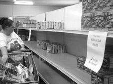 Thống kê điều tra số dân Mỹ cho thấy có hơn 10% dân Mỹ sống dưới mức nghèo. Ăn và mặc là vấn đề cần giải quyết trước tiên với người nghèo. Công dân Mỹ hoặc cư dân vĩnh cửu (có thẻ xanh) hợp tiêu chuẩn thu nhập thấp có thể xin chính quyền cấp Phiếu thực phẩm (Food Stams). Mỗi hộ hằng tháng có thể được cấp mức phiếu cao nhất như sau: hộ 1 người – 155 USD; 2 người – 284; 3 người – 408; 4 người – 518; 5 người – 615; 6 người – 738; 7 người – 816; 8 người – 932; hộ trên 8 người: cứ thêm 1 người thì cấp thêm 117 USD. Loại phiếu này như một loại thẻ tín dụng không thể chi tiêu quá mức của nó; mỗi tháng chính quyền nạp số tiền nói trên vào thẻ; người giữ thẻ chỉ được dùng nó để mua các thứ thực phẩm như bánh mì, rau quả, thịt cá, sữa … chứ không được mua thuốc lá hoặc đồ dùng sinh hoạt khác.