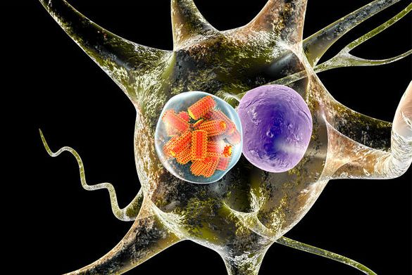 Virus bệnh dại, đã tồn tại từ hàng ngàn năm nay, xâm nhập vào cơ thể qua vết thương (do bị cắn, cào, liếm), nhân lên tại các tế bào cơ rồi theo đường dây thần kinh ngoại vi lên não gây tổn thương các tế bào thần kinh trung ương. Chiến lược này cho phép nó vượt qua một hàng rào quan trọng: hàng rào máu não – lớp màng ngăn chặn hầu hết các mầm bệnh đi từ máu vào hệ thần kinh trung ương. Nhưng hàng rào này cũng ngăn cản thuốc chữa ung thư đến được các tế bào bị nhiễm bệnh.