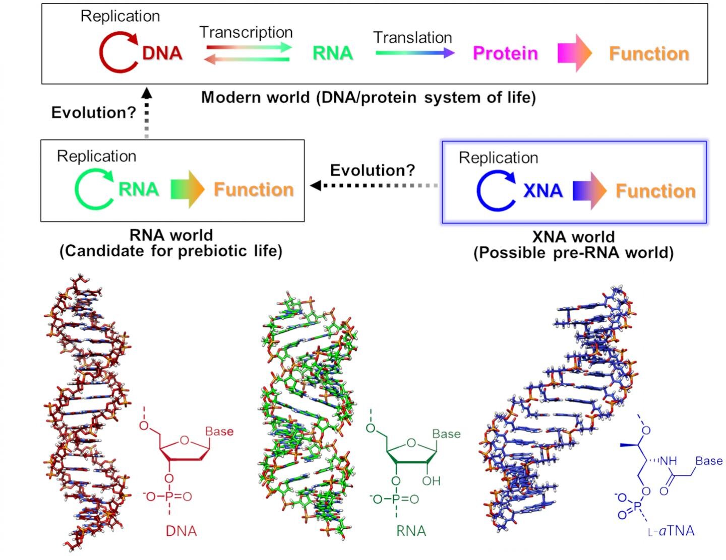 “Thế giới RNA vẫn được nghĩ một cách phổ biến là sân khấu bắt nguồn sự sống”, nhà kỹ thuật sinh học phân tử ở trường đại học Nagoya Keiji Murayama nói. “Trước giai đoạn này, thế giới tiền RNA có thể chứa các phân tử vẫn được gọi là các axit nucleic xeno (XNAs). Dẫu sao không giống RNA, sự tái tạo XNA có thể không cần đến các enzym. Chúng tôi đã có thể tổng hợp một XNA mà không cần đến enzym, qua đó ủng hộ một giả thuyết là thế giới XNA có thể tồn tại trước thế giới RNA”.