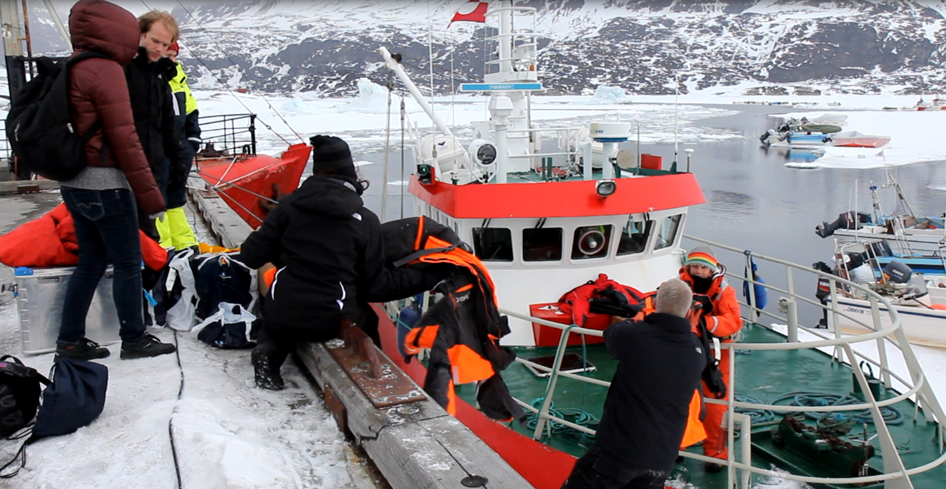Các nhà nghiên cứu lên tàu đi khảo sát Bắc Cực. Ảnh: Viện Nghiên cứu tài nguyên thiên thiên Greenland.
