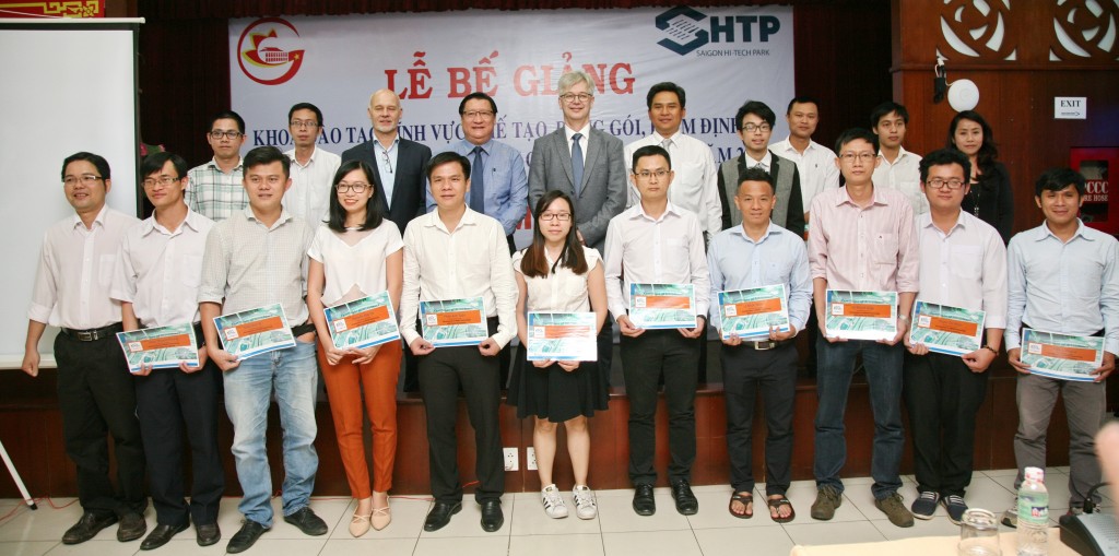 Sáng nay, 7/2/2018, trung tâm nghiên cứu triển khai (trực thuộc khu công nghệ cao TP.HCM) và Đại học TuDeft (Hà Lan) đã trao chứng nhận tốt nghiệp cho 15 chuyên viên đầu tiên đến từ các trường đại học và doanh nghiệp khởi nghiệp trong khu công nghệ cao TP.HCM đã tham dự khóa đào tạo về công nghệ đóng gói bằng kỹ thuật in 3D và chế tạo thử nghiệm cảm biến lưu lượng (flow sensor) tại phòng sạch của trung tâm nghiên cứu triển khai.