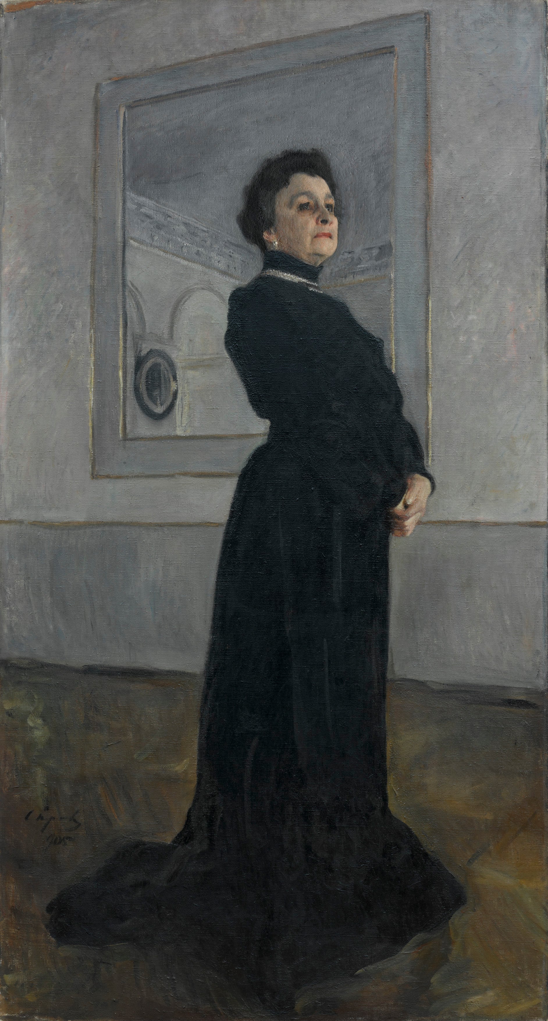 Chân dung nữ nghệ sỹ Maria Ermolova cũng có trong triển lãm, một chân dung bộc lộ một nét kỳ lạ khó rời mắt. Chekhov đã viết vở kịch đầu tiên của mình cho bà; bà cũng là nữ nghệ sỹ yêu thích của Stanislavski và màn trình diễn của bà trong vở “Trinh nữ Orleans” của Schiller đã thành công đến mức được diễn trong vòng 18 năm tại Nga. Họa sỹ Serov đã khéo léo tạo cho Ermolova một thế đứng vững chãi khiến người xem phải ngước nhìn bà – gần như một bức tượng màu đen nổi bật trên nền họa tiết màu bạc trong căn hộ trang nhã của bà. Đôi tay nắm chặt, gương mặt có phần nghiêm nghị và lạnh lùng, bà ngạo nghễ thu hút sự chú ý. Đây thực sự là một màn biểu diễn bậc thầy của hai nghệ sỹ bậc thầy.