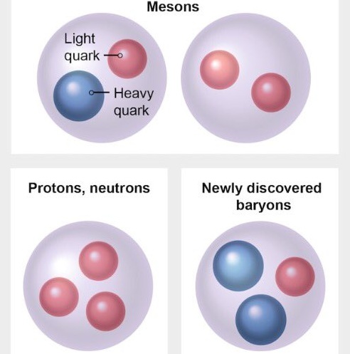 Hạt Xi-cc++ (dưới cùng bên phải), một baryon với 2 quark nặng. Nguồn ảnh: Scientific American.