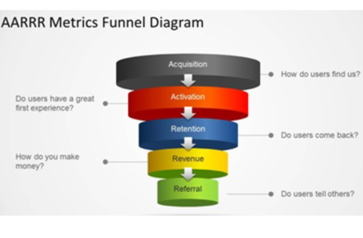 Được phát triển bởi Dave McClure, công cụ AARRR (được gọi là “cướp biển” vì đọc lên giống như âm thanh cướp biển cầm thanh kiếm đe dọa) được sử dụng phổ biến và được yêu thích bởi các doanh nghiệp nói chung, không riêng gì khởi nghiệp nhờ sự đơn giản, nhiều ý nghĩa của nó. Nếu như trong quá khứ, nguyên tắc AIDA (Attraction – hấp dẫn; I- Interested – Quan tâm; D- Desire – Mong muốn; A- Action – Hành động) trong marketing và cũng là một phễu đơn giản trong kinh doanh từng rất phổ biến thì AARRR được coi như sự thay thế hoàn hảo cho AIDA.