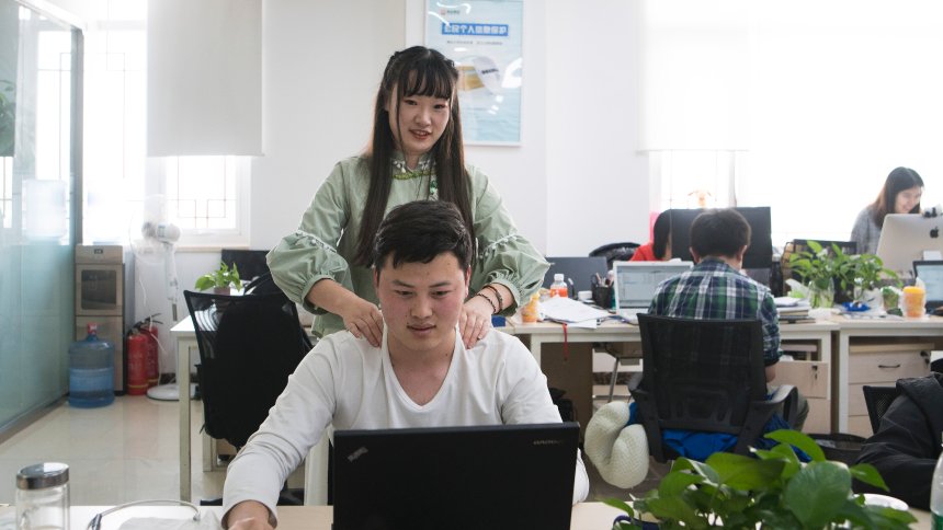 Shen Yue đảm nhiệm nhiều nhiệm vụ cùng một lúc, cô là người chuyên lo về tinh thần, là huấn luyện viên về động lực, là chuyên gia xoa bóp, là hoạt náo viên và là nhân viên thư ký trong một start up. Cô gái 25 tuổi này làm việc tại một start up ở Trung Quốc (TQ) với tư cách là “thư giãn viên dành cho các lập trình viên”. Nhiệm vụ của cô là giúp các đồng nghiệp không bị stress, được thư giãn và dễ chịu.