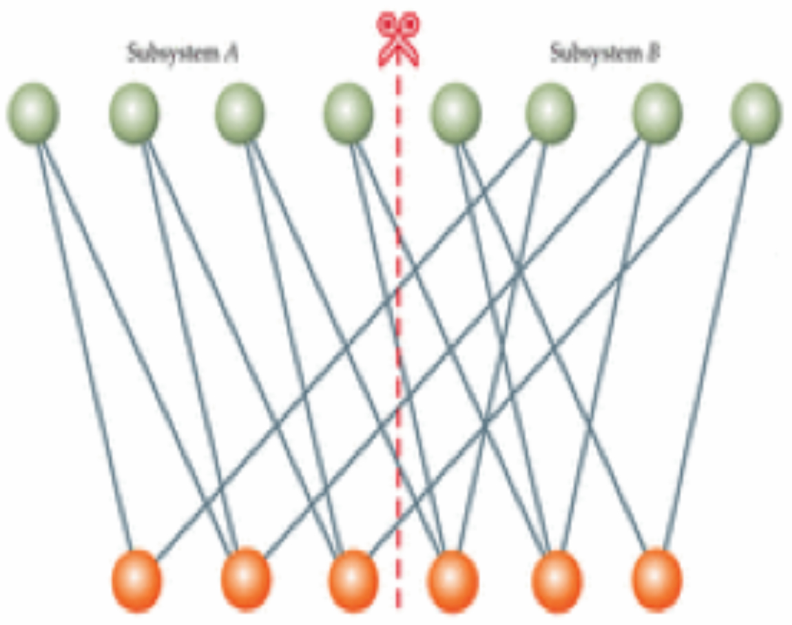 Biểu diễn mạng nơron của một trạng thái lượng tử một chiều có rối lượng tử tuân theo định luật thể tích tối đa: Nếu hệ được chia thành hai hệ con, A và B, thì entropy của mỗi hệ con tỷ lệ với thể tích của nó. Mỗi nơron khả kiến kết nối tối đa với ba nơron ẩn, do đó, số lượng tham số cần thiết để mô tả hệ con tỷ lệ tuyến tính với kích thước của hệ chứ không phải theo hàm mũ như trong biểu diễn mạng tensơ thông thường.