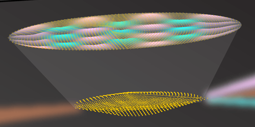 Kevin Cox tại Phòng thí nghiệm Quân đội Mỹ ở Maryland, đã hình dung một mạng lượng tử, trong đó thông tin lượng tử được “vẽ” lên một tấm toan làm bằng các nguyên tử chứ không phải là một dãy các bit lượng tử riêng biệt. Anh và cộng sự đã thiết lập cách để tạo ra một nền tảng lưu trữ các kích thích lượng tử lên một hình dạng các mẫu sóng spin trong một tập hợp nguyên tử được giữ trong một hốc quang học. Nhóm nghiên cứu đã trình diễn kỹ thuật đó của mình bằng việc lưu trữ bốn sóng spin riêng rẽ theo cách này.