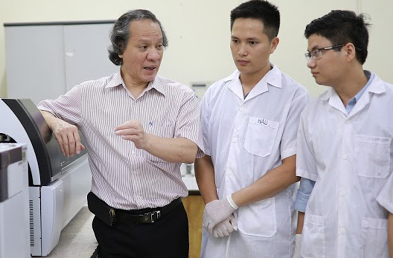 GS. TS Phạm Hùng Việt và các cộng sự bên thiết bị sắc ký lỏng.