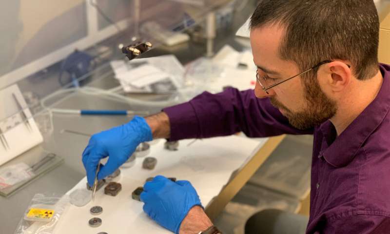 Nhà vật lý Evan Groopman chuẩn bị mẫu hạt uranium để đo tại máy NAUTILUS ở Phòng thí nghiệm Phổ khối gia tốc tại Phòng thí nghiệm Hải quân Mỹ tại Washington D.C., vào ngày 5/9/2019. Nguồn: U.S. Navy/Nicholas E. M. Pasquini