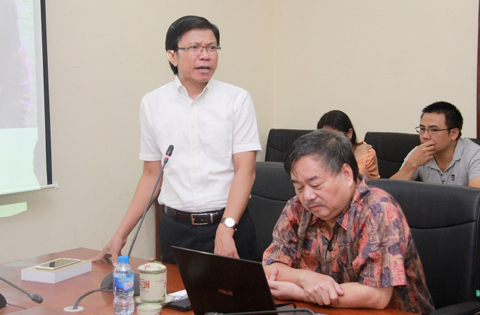 PGS Hoàng Anh Tuấn và PGS Nguyễn Văn Chính tại toạ đàm.