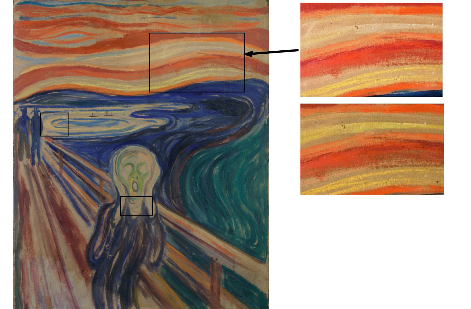 Một phiên bản vẽ năm 1910 của “The Scream” (Edvard Munch) đã được kiểm tra trên kính hiển vi để xem màu sắc bị phai nhạt như thế nào.