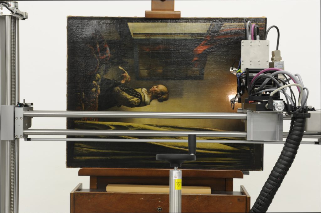 Công việc bảo tồn bức tranh đã được thực hiện vào mùa xuân năm 2017. Christoph Schölzel, một thành viên trong nhóm nghiên cứu của Staatliche Kunstsammlungen đã sử dụng tia X, hình ảnh phản xạ hồng ngoại và phân tích trên kính hiển vi để kiểm tra từng lớp vẽ của bức tranh. Các cuộc kiểm tra được thực hiện với việc tham khảo dữ liệu từ những lần phục chế trước đó. Cuối cùng, anh và đồng nghiệp đã đưa ra kết luận: Vermeer không phải là người vẽ phủ lên hình ảnh Cupid. Và thật ngạc nhiên khi phát hiện ra là lớp sơn đó được bồi thêm nhiều năm sau khi họa sĩ qua đời. “Thậm chí còn có một lớp bụi bẩn phía trên lớp sơn ban đầu trên vị thần. Nó cho thấy, bức tranh đã ở trạng thái ban đầu trong nhiều thập kỷ trước khi bị xóa hình ảnh thần tình yêu”, Neidhardt nói và cho biết thêm, lớp sơn phủ lên vị thần này có màu đậm hơn lớp sơn vẽ màu tường mà Vermeer từng sử dụng, do đó bức tranh có màu sắc tối tăm hơn bức tranh gốc.