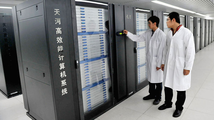 Trong một căn phòng rộng của Trung tâm Siêu máy tính Quốc gia Thiên Tân là hơn 100 tủ kim loại màu đen và xám, được xếp vào hàng ngũ như một đội quân diễu hành. Chúng chứa siêu máy tính Tianhe-1A. 8 năm trước, đây là máy tính đầu tiên của Trung Quốc thống trị vị trí máy tính nhanh nhất thế giới, trong một thời gian ngắn, với tốc độ 2,57 petaflop.