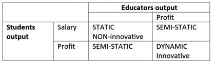 Nếu trong trường hợp một giảng viên được lợi vật chất ngoài lương “profit” từ sự đổi mới phương pháp dạy của mình hoặc một sinh viên đổi mới cách học mà kiếm được lợi vật chất ngoài mục đích kiếm đồng lương, tức là sự đổi mới sáng tạo diễn ra từ một phía, quá trình này gọi là “bán tĩnh”, tức là chỉ một bên hưởng lợi.
