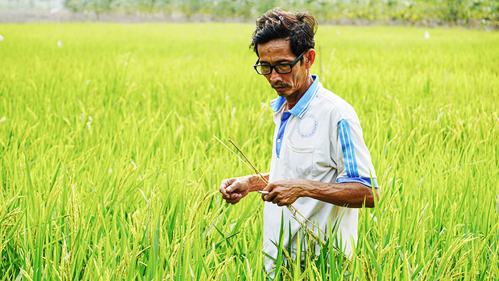 Ông Hoa Sĩ Hiền, người lai tạo giống lúa chịu mặn 5 phần ngàn. Nguồn ảnh: nhandan.com.vn