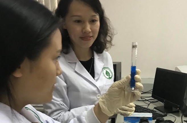 PGS. TS Lê Thị Lý hướng dẫn sinh viên trong phòng thí nghiệm.