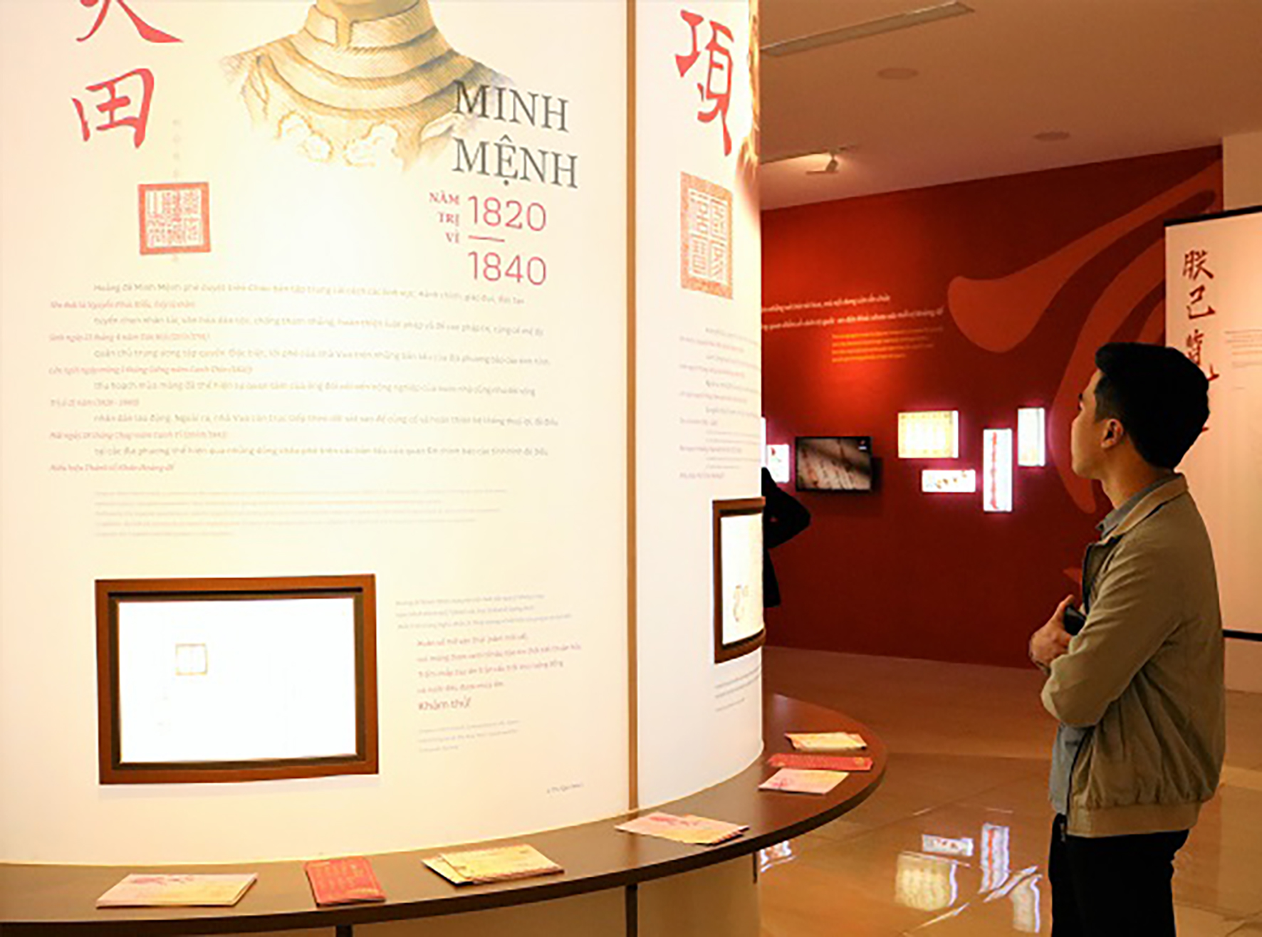 Triển lãm “Thư pháp của các Hoàng đế nhà Nguyễn” do Trung tâm Lưu trữ quốc gia I – Cục Văn thư và Lưu trữ nhà nước, khai mạc ngày 3/1/2020. Ảnh: Mỹ Hạnh