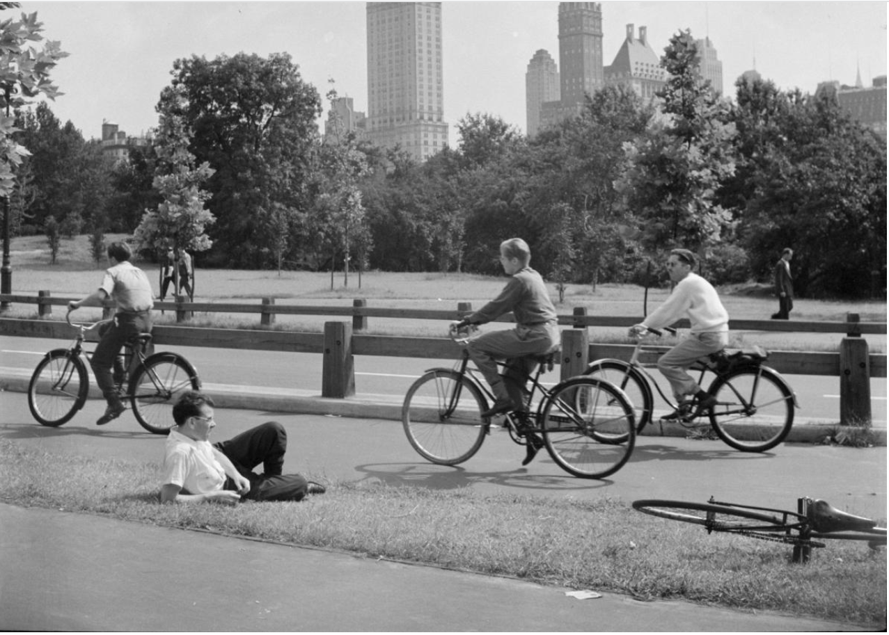 Những người trẻ tuổi đi xe đạp ở Công viên Trung tâm của New York vào năm 1942. Sau khi gây bão trên toàn thế giới trong những năm 1890, xe đạp đã sớm bị rớt xuống vị trí của một loại “đồ chơi” khi ô tô dần chiếm ưu thế.