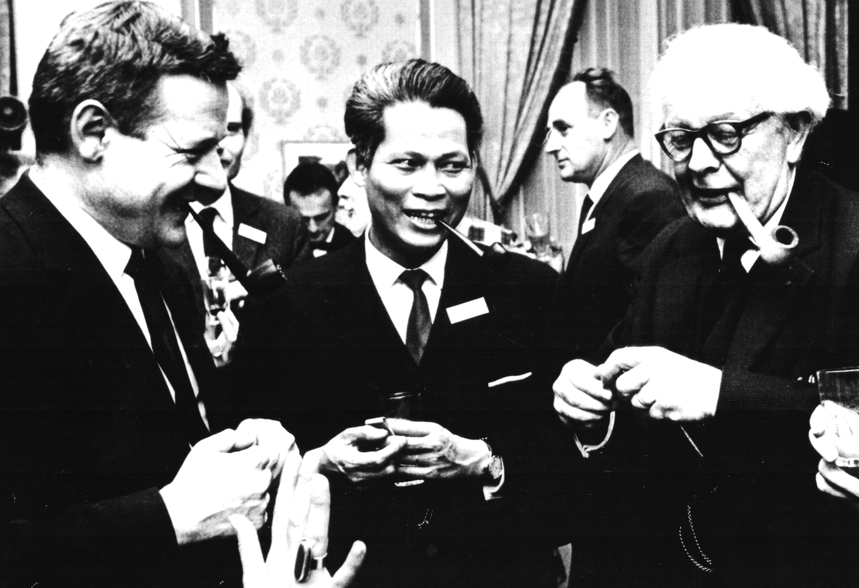 GS Vĩnh Bang (giữa) và người thầy GS Jean Piaget. Ảnh: Lưu trữ gia đình GS Vĩnh Bang.
