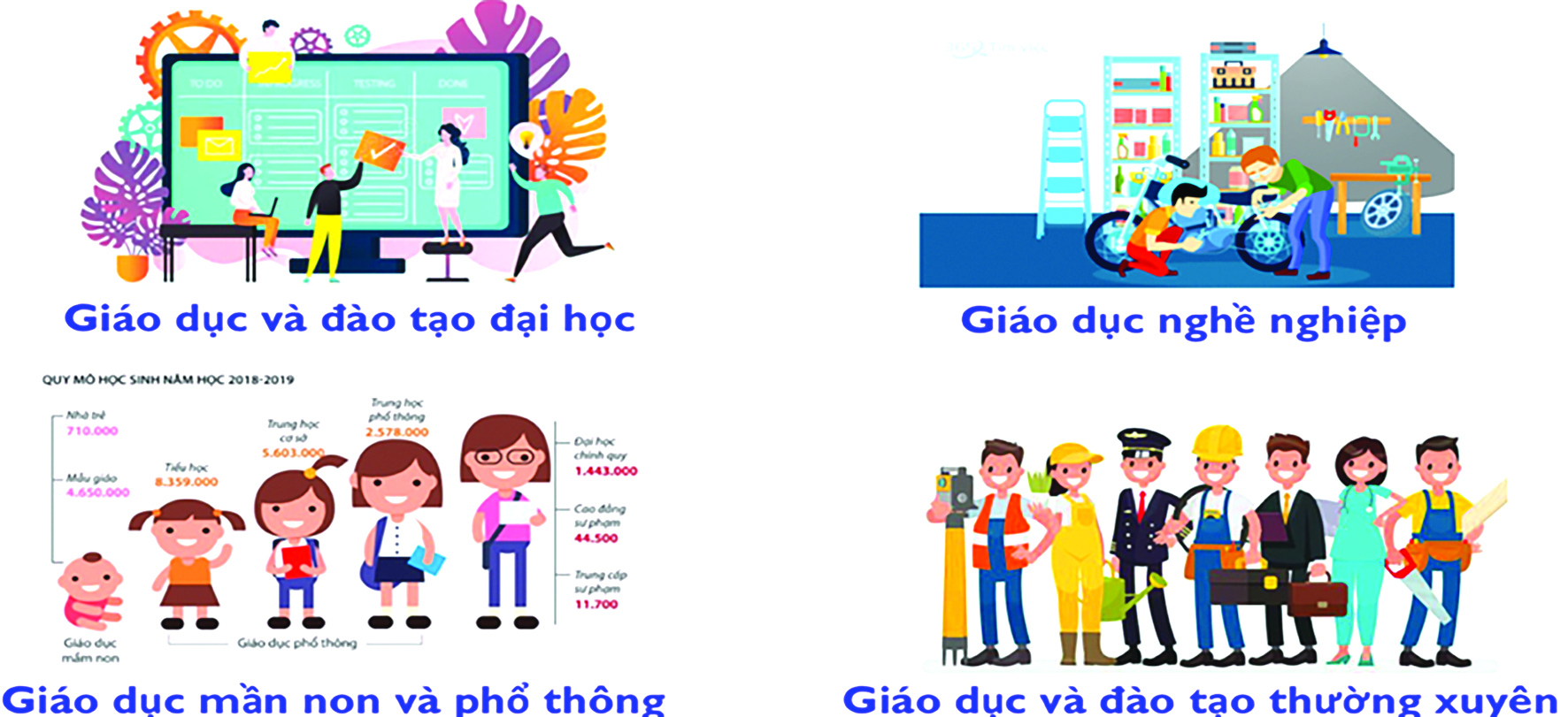 Hình 1. Bốn lĩnh vực trụ cột trong hệ thống giáo dục và đào tạo của Việt Nam.