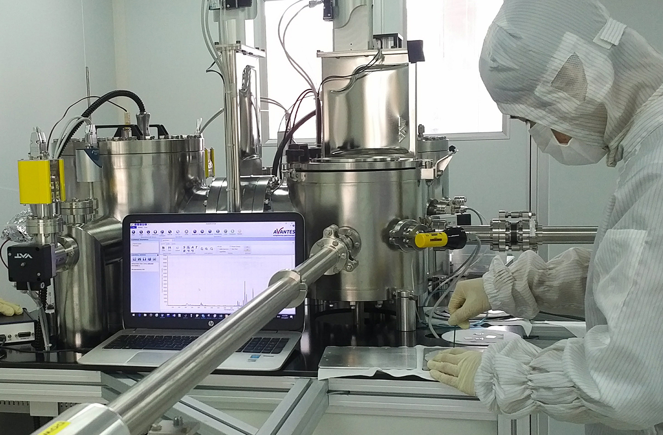 Các nghiên cứu viên làm thí nghiệm phủ màng và khắc khô phản ứng tạo hình các linh kiện cấu trúc nano tại phòng sạch của Trung tâm Nano và Năng lượng (NEC). Ảnh: Đặng Tuấn Linh.