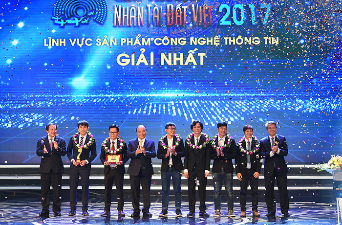 Sinh viên trường Đại học Duy Tân giành giải nhất cuộc thi Nhân tài đất Việt 2017. Nguồn: ĐH Duy Tân.