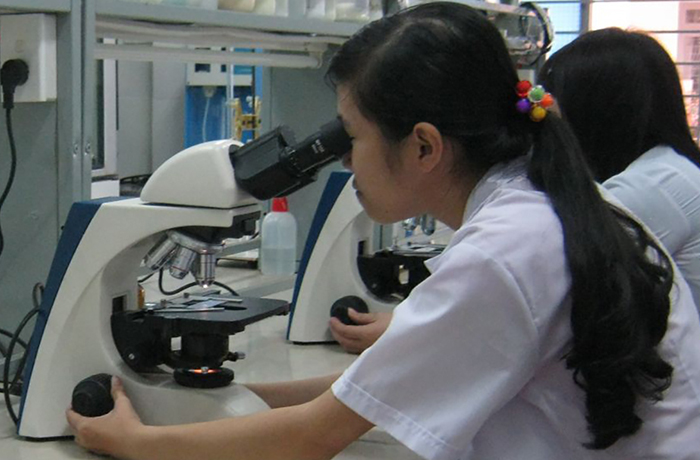 Một số trường tích cực triển khai đồng loạt KĐCL quốc gia và quốc tế đối với cả cấp trường và cấp chương trình. Thí dụ, tính đến năm 2016, ĐH Bách khoa TPHCM đã có 20 chương trình được KĐCL quốc tế và mới đây vừa được KĐCL quốc tế cấp trường. Trong ảnh: Phòng thí nghiệm Chuyển hóa sinh học thuộc ĐH Bách khoa TPHCM hoạt động trong lĩnh vực Vi sinh vật học, Chuyển hóa sinh học, Thực phẩm chức năng. (Nguồn: khoahoctot.vn).