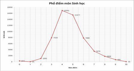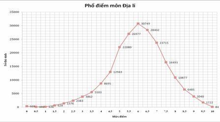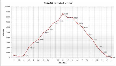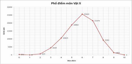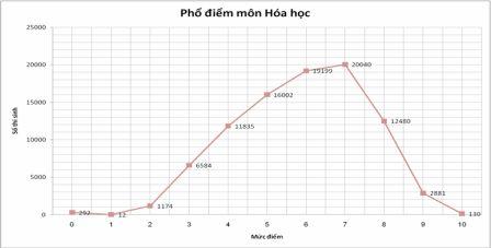 Phổ điểm của các môn thi kỳ thi THPT Quốc gia năm nay do Bộ Giáo dục và Đào tạo tổng kết, cho thấy, môn hóa học có kết quả thi tốt nhất (số thí sinh đạt điểm 7 chiếm đông nhất), tiếp theo đó là môn toán (6,5), vật lý (6), địa lý (6), ngữ văn (5), lịch sử (5), sinh (4), ngoại ngữ (2,5).