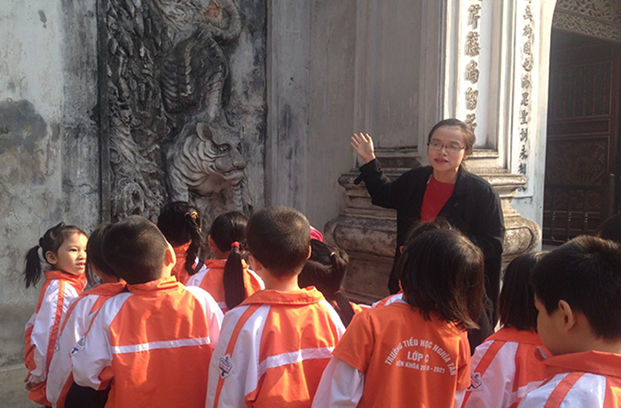 Học sinh trường TH Nghĩa Tân, Q. Cầu Giấy, Hà Nội trong giờ học ngoại khóa tham quan Văn Miếu – Quốc Tử Giám.