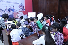 Các em làm quen với lập trình Scratch (lập trình đơn giản cho thiếu nhi) trong ngày hội STEM diễn ra vào ngày 16-17/5/2015 tại Hà Nội