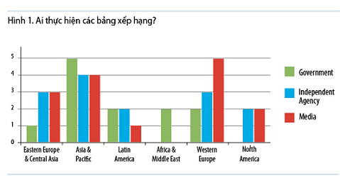 Có nhiều vô số các bảng xếp hạng ra đời những năm gần đây, có thể kể chẳng hạn như Bảng Xếp hạng ĐH toàn cầu của trường ĐH Giao Thông Thượng Hải, thường gọi Academic Ranking of World Universities (ARWU); bảng xếp hạng của Thời báo Times Higher Education’s Ranking, thường gọi THE; bảng xếp hạng The Web of World Universities Ranking, thường gọi Webometrics; hoặc CHE, hay U.S. News & World Report, chưa kể rất nhiều bảng xếp hạng ngành quản trị kinh doanh. Các bảng xếp hạng này do nhiều tổ chức khác nhau thực hiện, từ chính phủ các nước đến các tổ chức độc lập và các đơn vị báo chí truyền thông. Hình 1 cho thấy sự phân bố các bảng xếp hạng, tính đến 2010.