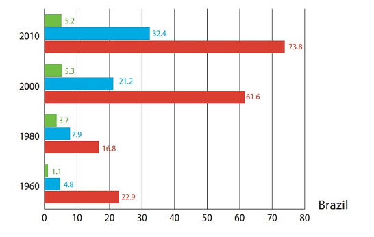 Hình 8. Tỉ lệ người có bằng trung học trong dân số của Brazil và Chile, 2010
