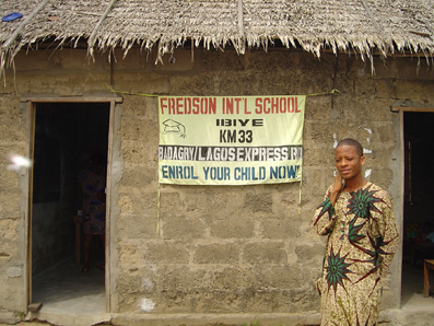 Nhưng bà ta sai hoàn toàn. Trường Ken Ade (trên phố Apollo gần đó) do ông Bawo Sabo Elieu Ayeseminikan – được mọi người gọi là ông B.S.E. – dựng năm 1990, ban đầu chỉ có năm học sinh, lớp học được tiến hành trong tiền sảnh của nhà thờ, phụ huynh trả tiền theo ngày, đấy là nói lúc họ có đủ tiền. Hiện nay nhà trường có 200 học sinh, từ mẫu giáo đến lớp sáu. Học phí là 2.200 đồng Nigeria (khoảng17 USD)/học kì hay 4 USD/tháng, nhưng có 25 em được học miễn phí. “Trẻ mồ côi, tôi biết làm sao. Tôi không thể đuổi học bọn trẻ được”, ông nói. Trong động cơ xây dựng trường của ông có cả lòng nhân từ lẫn thương mại – vâng, ông cần việc làm và thấy rằng các phụ huynh thất vọng với trường công cần có chỗ cho con em học.