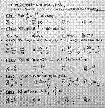 Một bài kiểm tra môn toán 1tiết (45 phút), lớp 6, chỉ thuần túy đòi hỏi những kỹ năng tính toán.