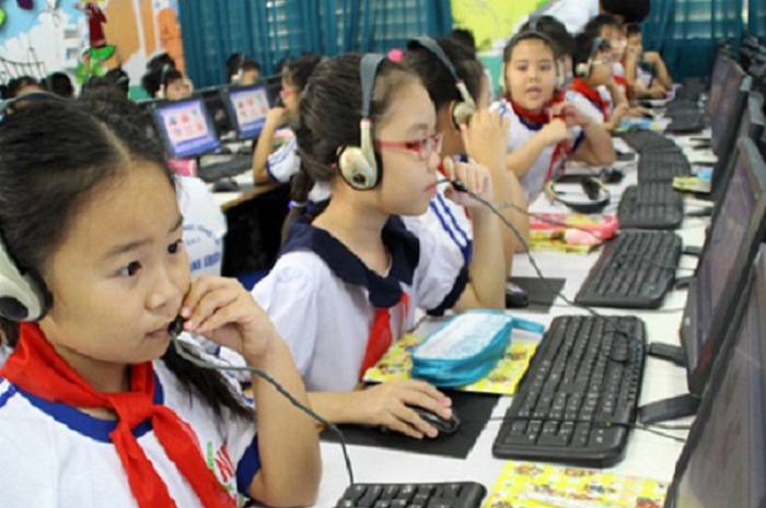 Học sinh học ngoại ngữ tốt hơn với sự hỗ trợ của máy tính. Ảnh: Trung tâm tin học, Đại học KHTN, ĐHQGTPHCM