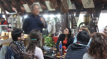 Thưa Giáo sư Stewart, thật vui khi thấy cuộc gặp gỡ của các sinh viên đầy hào hứng, lạc quan, tươi trẻ như vậy. Những bạn ấy đều đang ở ngưỡng cửa trưởng thành và thế giới chỉ mới bước qua ngưỡng cửa của thế kỷ hai mươi mốt. Nhìn đâu chúng ta cũng thấy dấu hiệu của tương lai, tương lai, và tương lai. Những bạn trẻ ấy đã chia sẻ những ý tưởng và thông tin về thế giới họ đang sống. Họ cũng nói về những mối quan tâm trong văn hóa diễn cảm, về những hy vọng của gia đình và cộng đồng, về sự thịnh vượng trong tương lai, và nỗi quan ngại đối với môi trường toàn cầu. Họ còn trao đổi địa chỉ email và cam kết duy trì mối quan hệ mới thiết lập trên những trang Facebook của họ. Thật là một điều hay tất cả những bạn trẻ ấy. Chúng tôi ước gì giáo sư cũng chia sẻ với bạn đọc về công việc của ông, như mục đích chuyến du học do ông và nhà văn Lý Lan tổ chức ở Việt Nam lần này